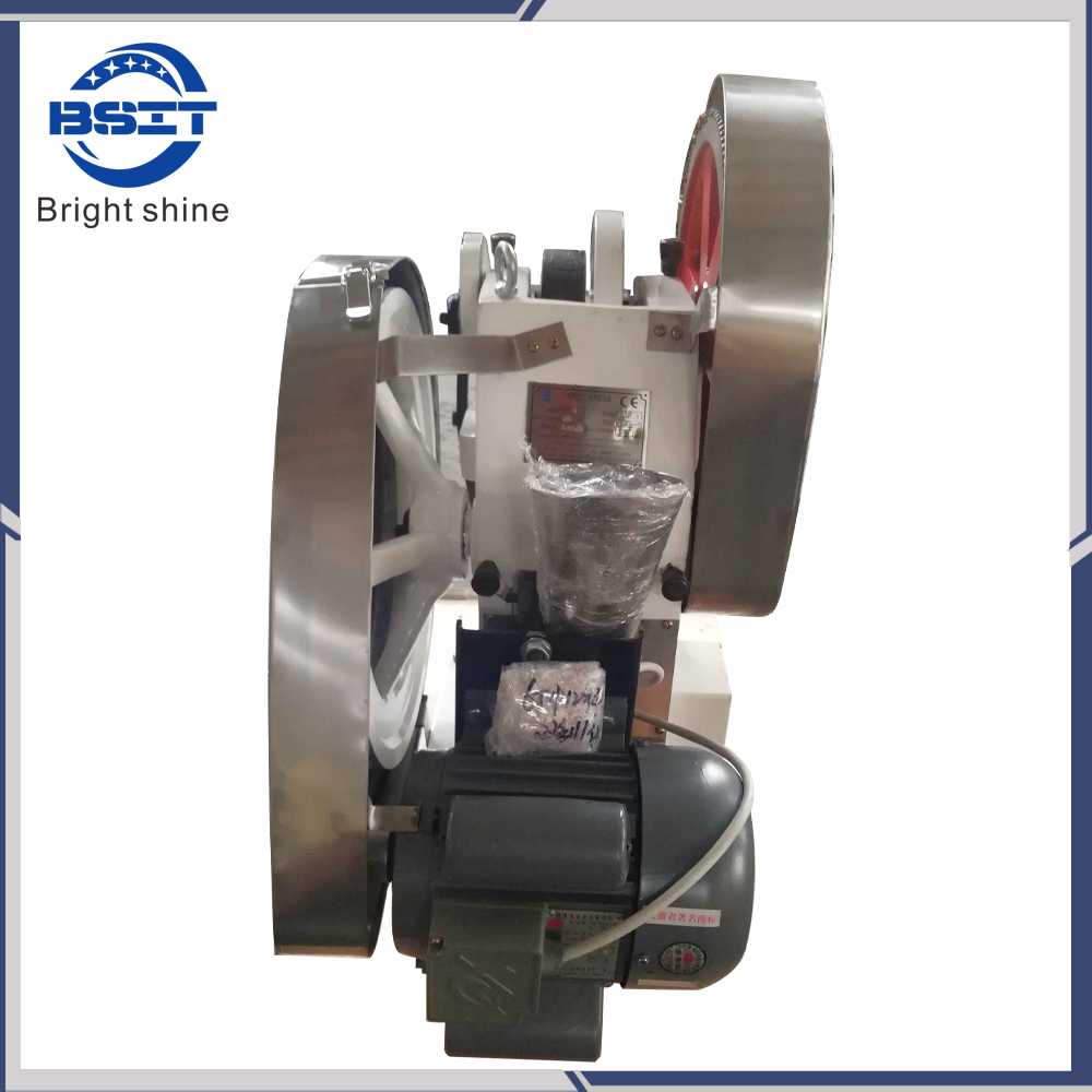 This machine is used for pressing different kinds of granular raw materials into round tablets. It is applicable to trial manufacturing in lab or batch production in small amount different kinds of tablets, sugar pieces, calcium tablets and tablets of abnormal shape. It features a small desktop type press for motive and continual sheeting. It can also be hand-operated. Only one pair of punching die can be erected on this press. Both filling depth of material and thickness of tablet are adjustable.