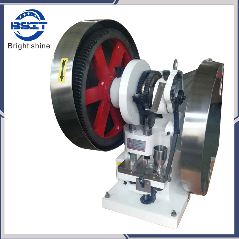This machine is used for pressing different kinds of granular raw materials into round tablets. It is applicable to trial manufacturing in lab or batch production in small amount different kinds of tablets, sugar pieces, calcium tablets and tablets of abnormal shape. It features a small desktop type press for motive and continual sheeting. It can also be hand-operated. Only one pair of punching die can be erected on this press. Both filling depth of material and thickness of tablet are adjustable.